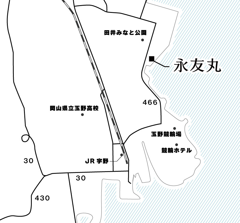 車でお越しの場合:宇野駅から車で約5分