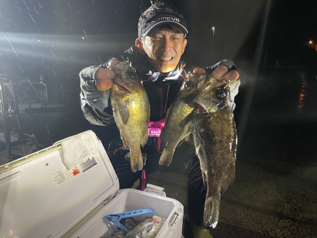 急遽、かめや釣具の川口さん、吉田さんとウチの常連さまとでナイトメバル出船